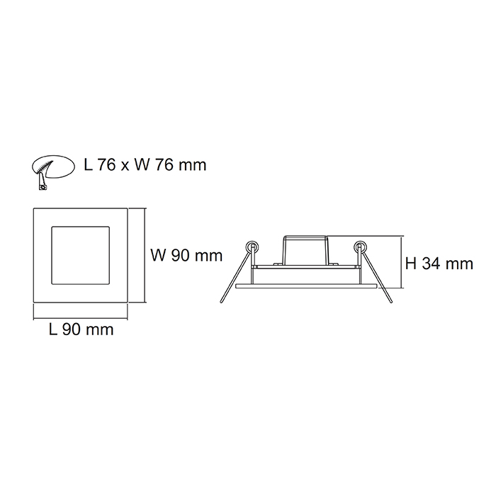 LED 3 watt recessed square profile wall luminaire