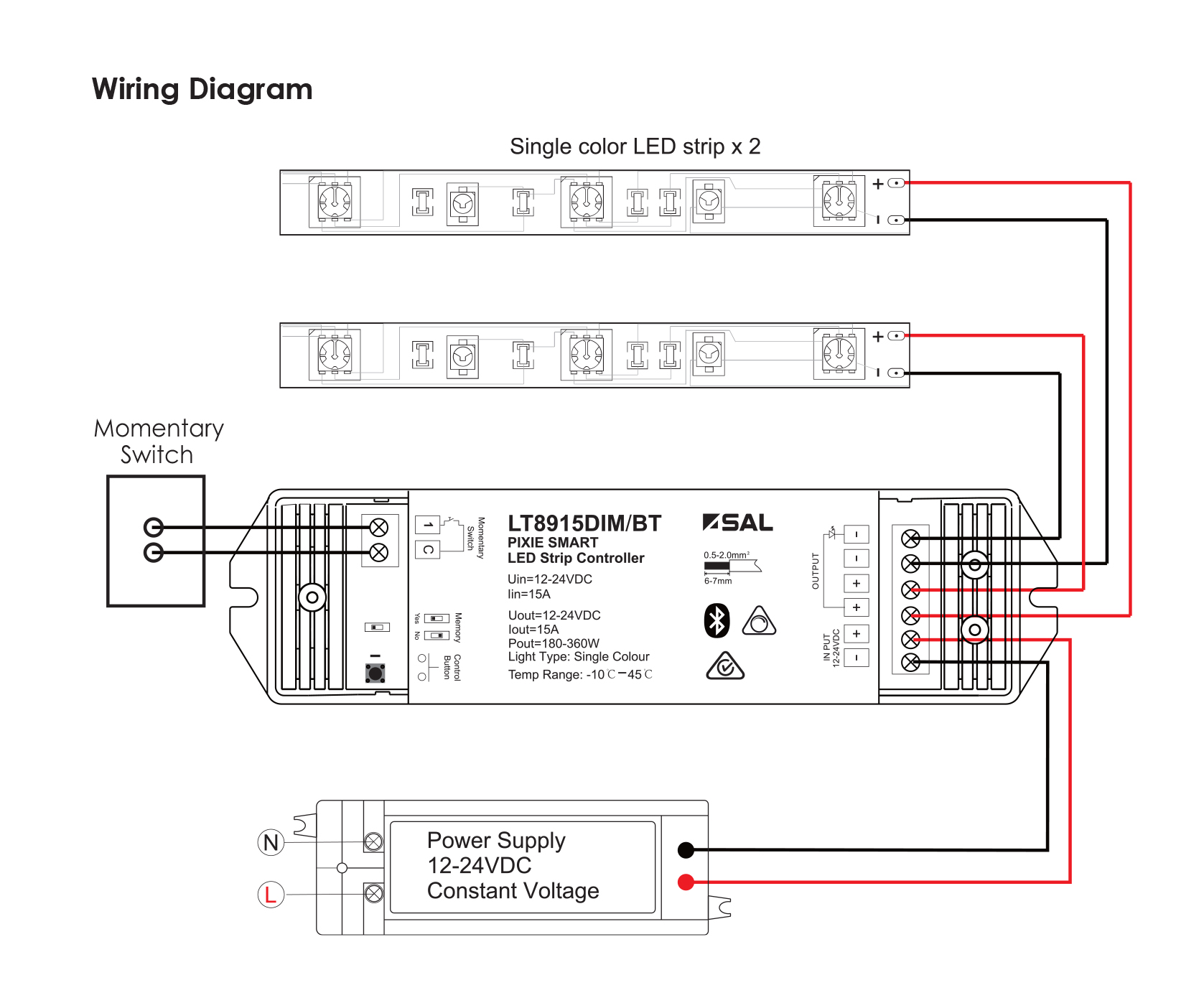 | LT8915DIM/BT | LED STRIP CONTROLLER | 24 | 360 | 175(L) x 45(W) x 27(H) | YES | Add |